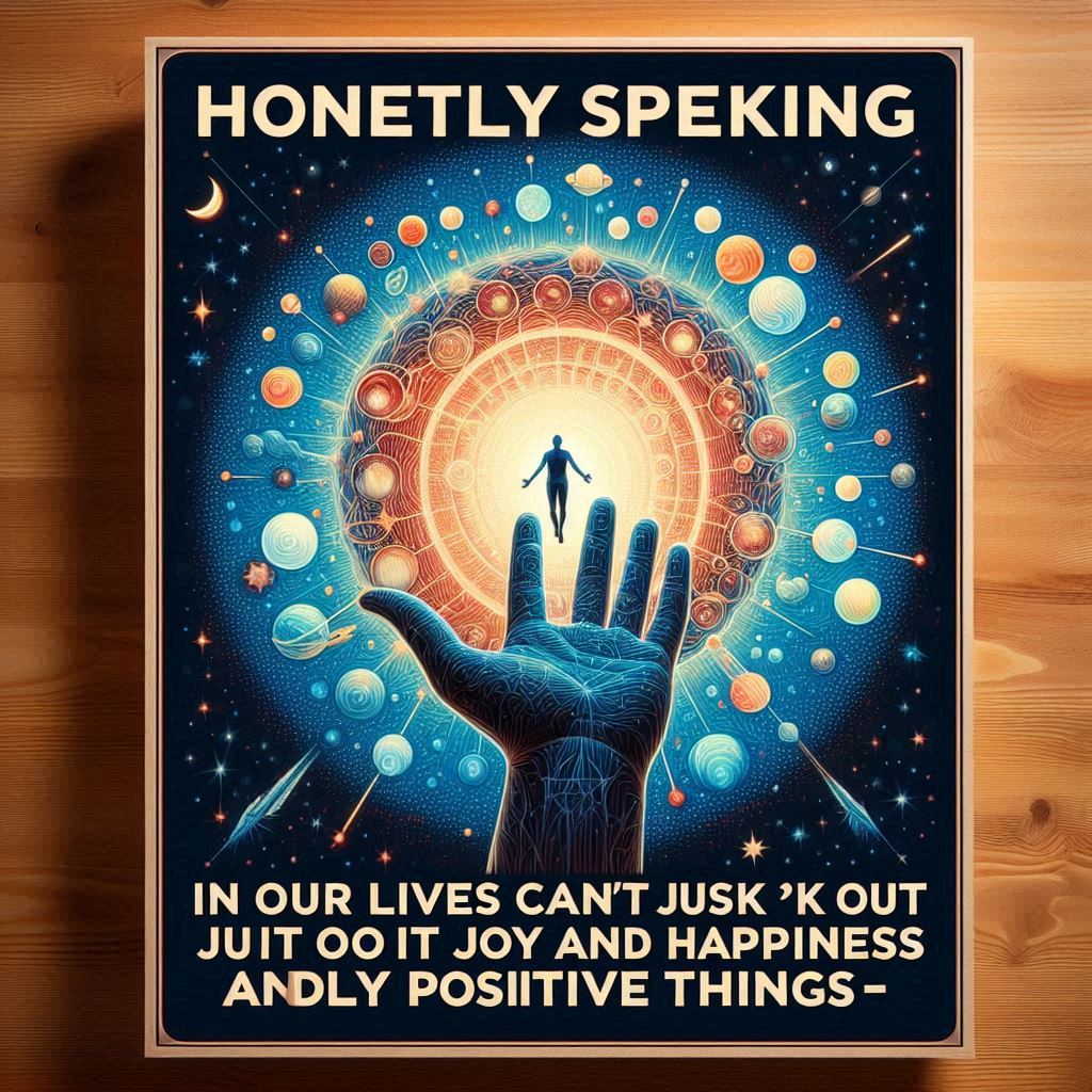 Honestly speaking, in our lives, we can’t just pick out joy and happiness and only positive things. It’s impossible to separate pleasure from dissatisfaction, joy from unhappiness. Life is a bundle of everything in different proportions, a single pulse of all the combined sounds.