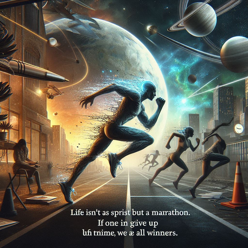 Life isn’t a sprint but a marathon. No one else can test me but myself. If I don’t give up and finish the race, we are all winners.