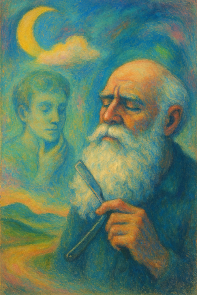 I watched my father shaving with sleepy eyes and asked,