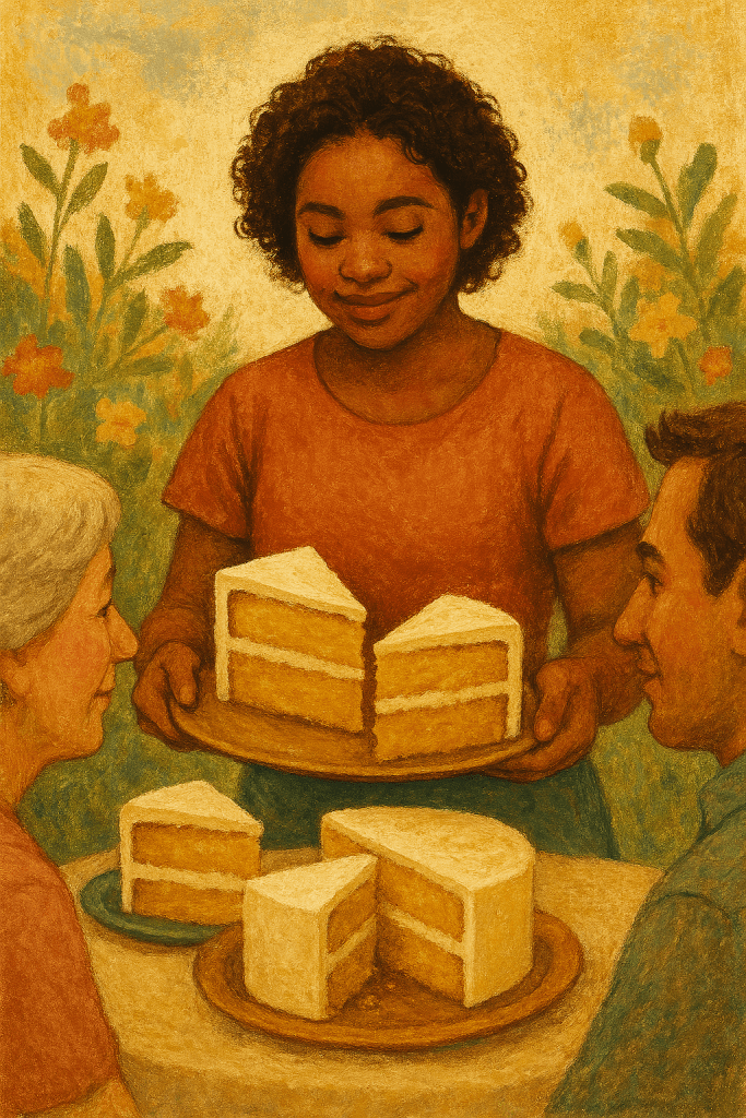 A cake is often cut into three pieces to make it easier to share. If only my life could be divided like that—one slice for me, one for you, and one for us. I’d love to portion it that way. If I could, life would be as sweet as cake. After all, the world isn’t perfect, and that’s okay. Time flows on, even when we stumble. Sometimes I give to others, sometimes others give to me, and together we live by sharing. Today, I want to offer a generous slice of life, freshly baked, for a sweeter tomorrow.